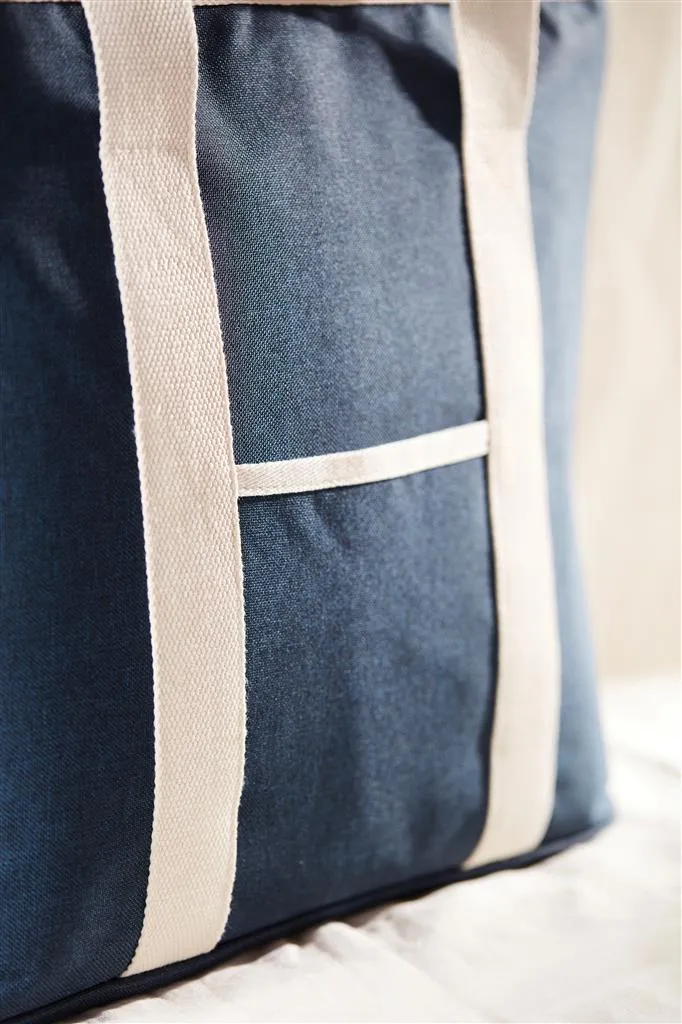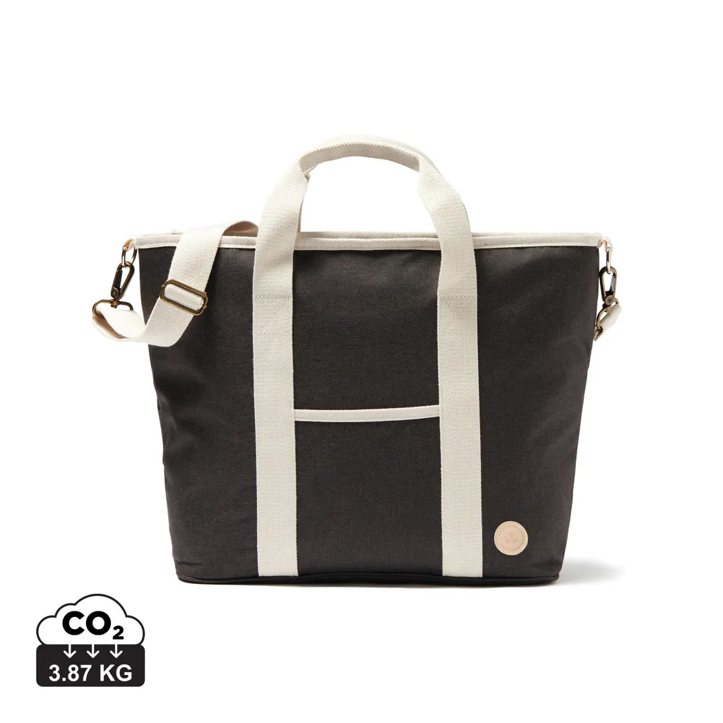 Rashladna torba prošarana ton po ton s detaljima od imitacije kože i pamuka tako da je lijepa kao obična torba i možete na piknik sa stilom. Napravljena od 50% recikliranog materijala od PET boca. Na vanjskoj strani rashladne torbe nalazi se i mali pretinac u kojem ima mjesta i za druge stvari. Gusta PEVA podstava osigurava dugotrajno zadržavanje hladnoće. Također se lako čisti i suši nakon upotrebe. Uz podesivu naramenicu i dvostruku ručku, rashladnu torbu možete nositi na različite načine.