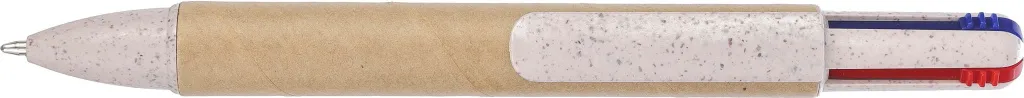 Četverobojna kemijska olovka od recikliranog kartona i pšenične slame. Okvirno 300 metara duljine pisanja po boji. Boje dopune tinte: plava, crna, crvena i zelena.