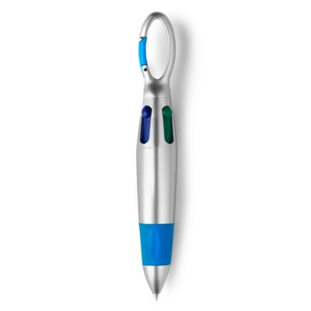 Kemijska olovka s 4 boje tinte: plava, crvena, crna i zelena; s karabinerom.