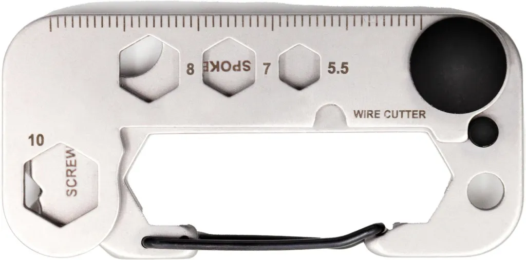 Izrađen od ojačanog martenzitnog nehrđajućeg čelika 420, višenamenski alat Twist kombinira 8 osnovnih alata u kompaktnom twist dizajnu koji udobno leži u vašoj ruci. Ovaj svestrani alat uključuje rezač žice, ključ za žbice za bicikl, višestruke ključeve (5,5-12 mm), privjesak za ključeve, otvarač za boce, karabiner, križne i ravne odvijače te ravnalo. Upakiran u crnu kutiju s umetkom od meke pjene za zaštitu, elegantan je i praktičan, idealan za svakodnevne zadatke.