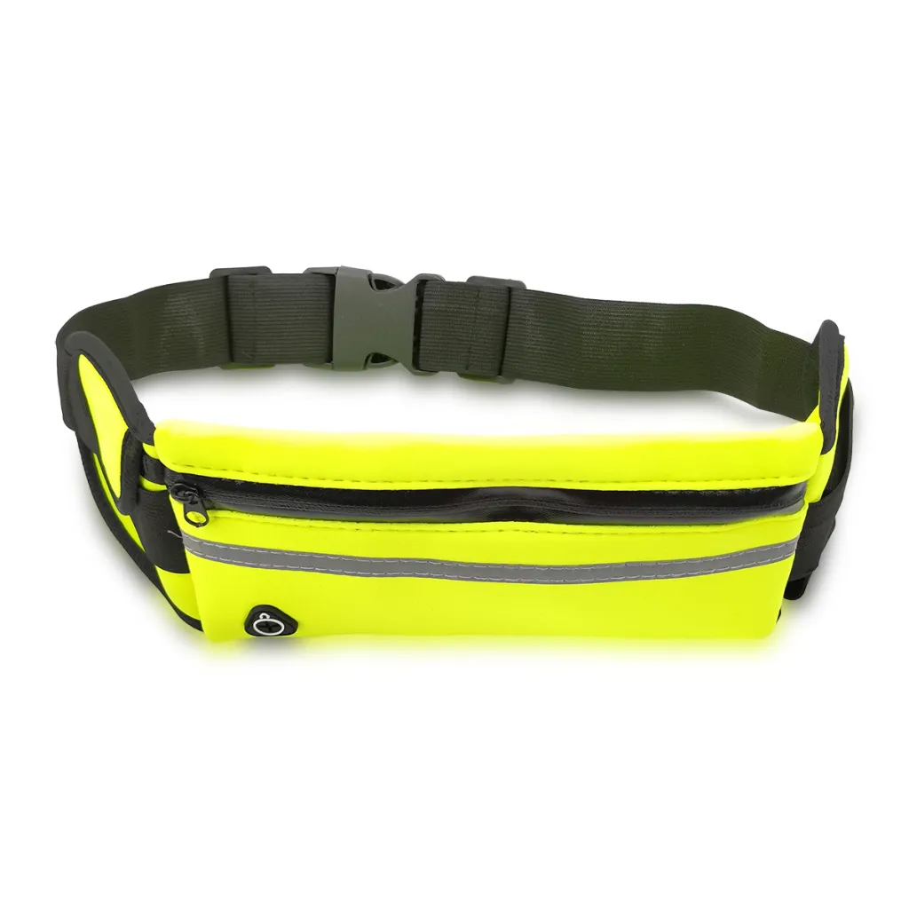 Sportska torba oko struka s glavnim pretincem i malim džepom. Također je opremljena posebnim držačem za boce, otvorom za kabel slušalica i reflektirajućim elementom. Zatvara se patentnim zatvaračem. Podesivi pojas. Osigurava udobno i sigurno nošenje novčanika, mobitela ili drugih sitnica.