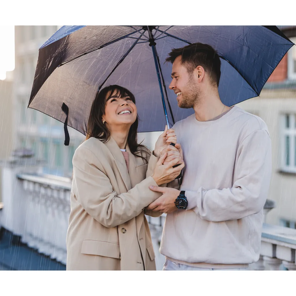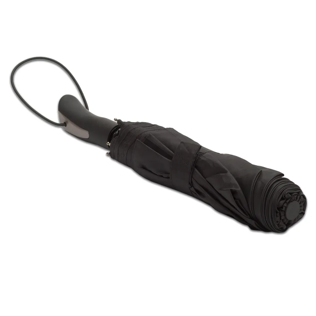 Sklopivi kišobran za 2 osobe s 8 panela od pongee 190T poliestera s mekanom plastičnom ručkom i rebrima od stakloplastike, otporan na vjetar. Automatsko zatvaranje i otvaranje. Vodootporno pakiranje.