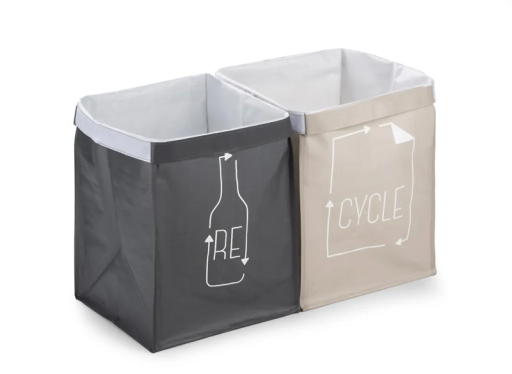 Komplet od dvije vrećice za razdvajanje otpada i održavanje reda. Dizajnirani s minimalizmom, dokazati će se ne samo u uredu već i kod kuće. Imaju domišljat i originalan print dizajniran posebno za Plavu kolekciju. Sadrži čičak traku kako bi se obje vrećice mogle spojiti. Izrađena od polipropilena.