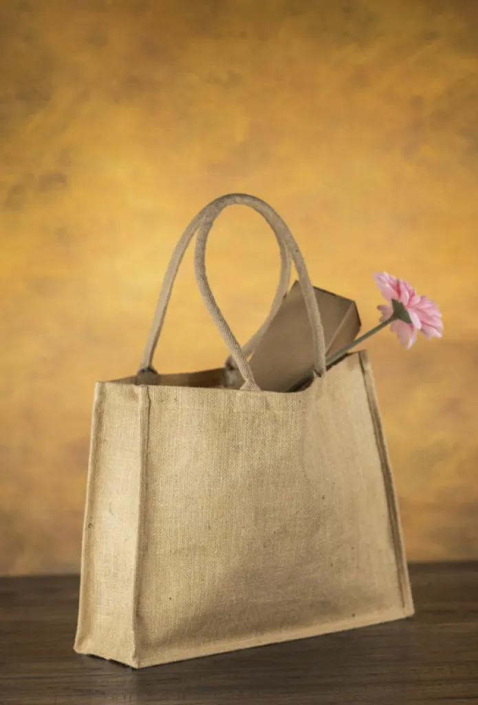 Torba za kupnju GRASS izrađena je od prirodne jute. Ima laminiranu unutrašnjost, koja ojačava torbu i olakšava uklanjanje prljavštine. Udobne okrugle ručke duge su 60 cm, prikladne za vješanje na rame.