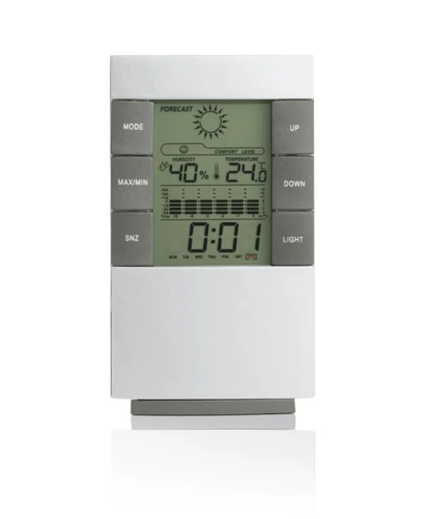 Zahvaljujući ovoj modernoj vremenskoj postaji, prognoziranje vremena više neće biti problem Ova meteorološka stanica je termometar, higrometar, budilica, kalendar, biometar, meteorološka stanica. Također ima osvijetljeni ekran. Preporuka za dotisak: graviranje na stanicu.