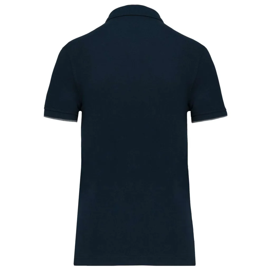 65% poliester / 35% češljani pamuk. Piqué tkanje. Perljivo na 60°C. Tretman protiv pilinga. Plaketa s 3 gumba s kontrastnom unutarnjom trakom.