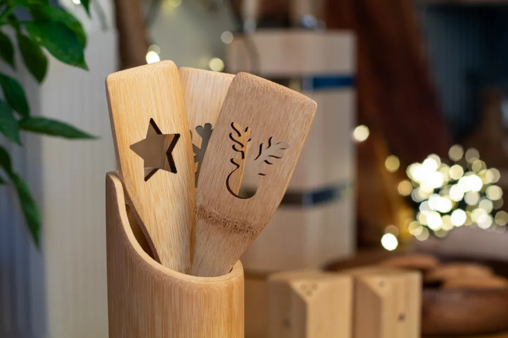 Žlica za kuhanje od bambusa s izrezanim dizajnom božićnog drvca.