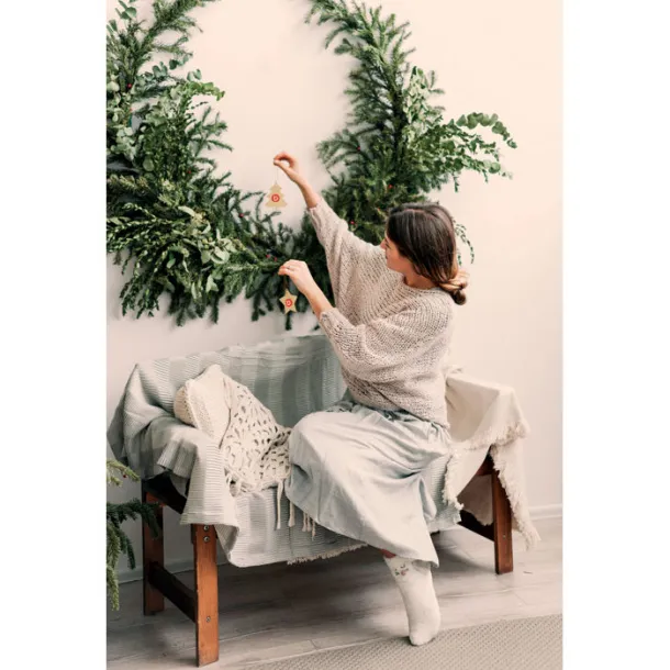 Božićni ukras u obliku zvijezde izrađen od šperploče s užetom od jute za sublimaciju. Bijeli tisak nije moguć.